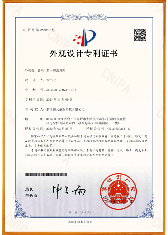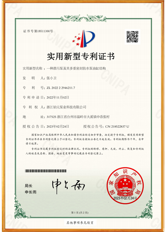 CERTIFICATECopyright 2018-2028 (C) 浙江铂元泵业科技有限公司 All Right Reserved.