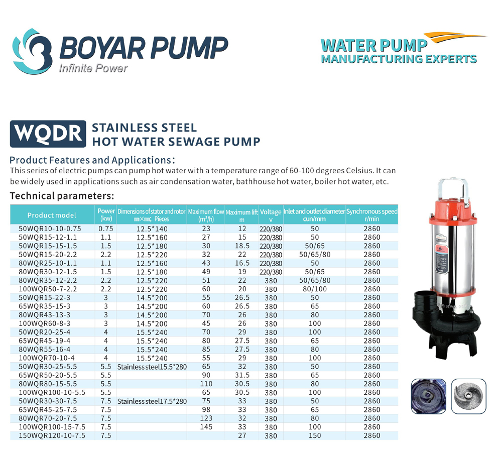 WQDR Series stainless hot water sewage pump