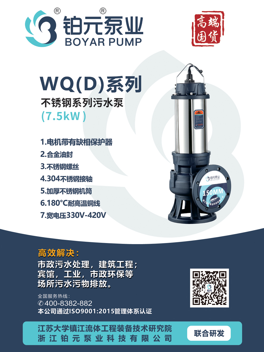 产品名称:WQ(D)系列(7.5kW不锈钢)