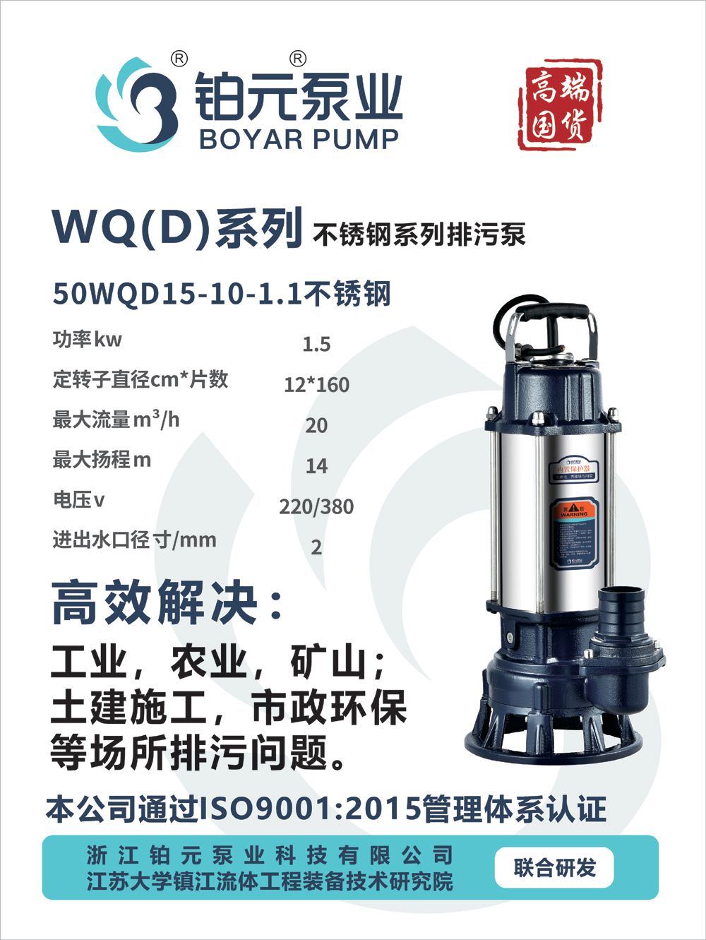 产品名称:WQ(D)系列(50WQD15-10-1.1不锈钢)