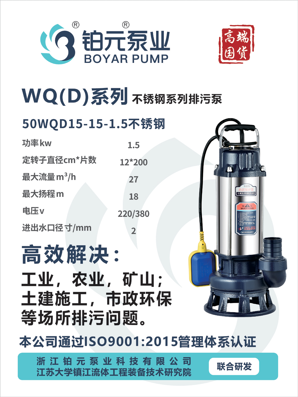 产品名称:WQ(D)系列(50WQD15-15-1.5不锈钢)