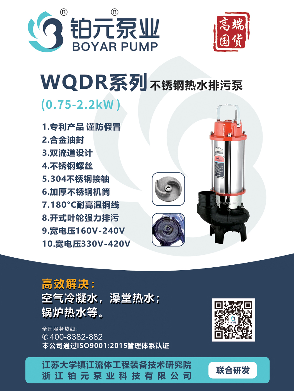 产品名称:WQDR系列不锈钢热水排污泵 产品特点