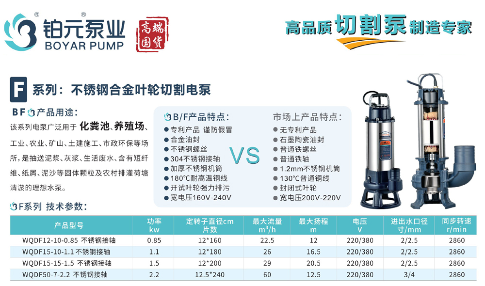 产品名称:F系列不锈钢合金叶轮切割电泵