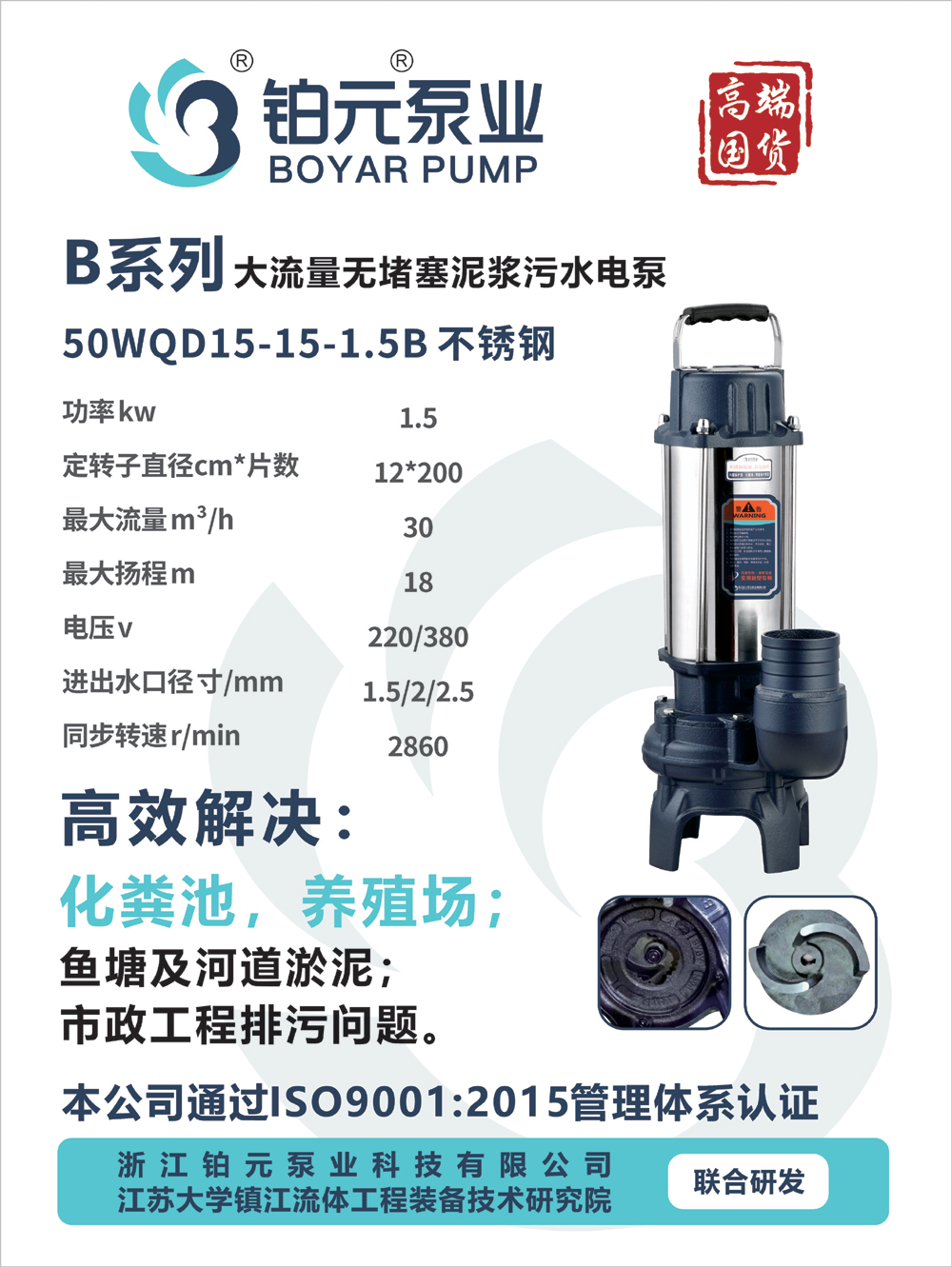 产品名称:B系列(50WQD15-15-1.5B不锈钢)