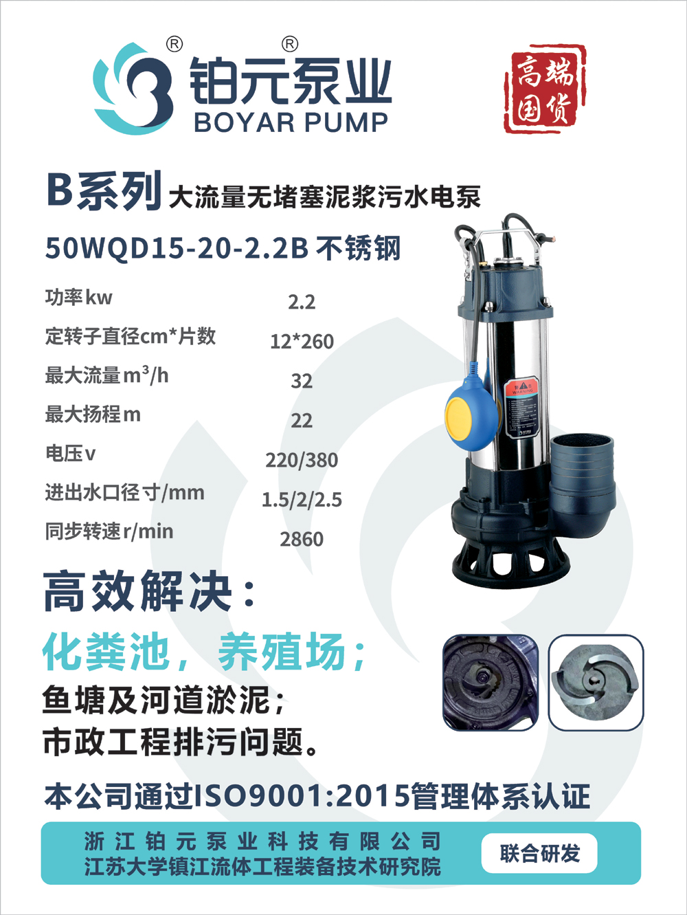 产品名称:B系列(50WQD15-20-2.2B不锈钢)