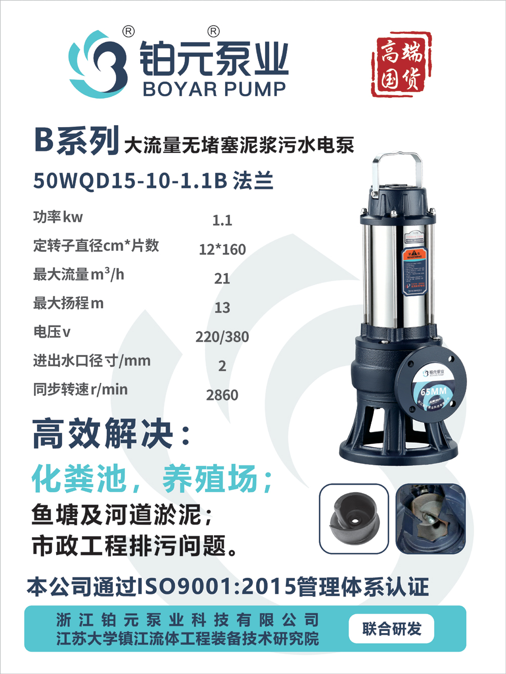 产品名称:B系列(50WQD15-10-1.1B 法兰)
