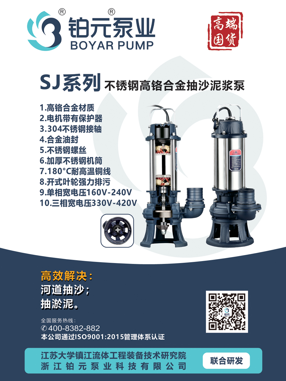 SJ系列高铬合金抽沙浆污泵 产品特点