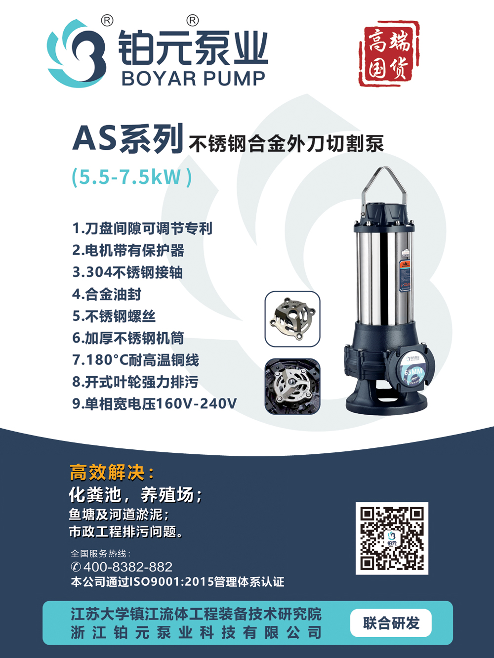 高品质不锈钢切割泵系列 不锈钢/铝壳/铁壳潜水电泵系列 不锈钢污水电泵系列
